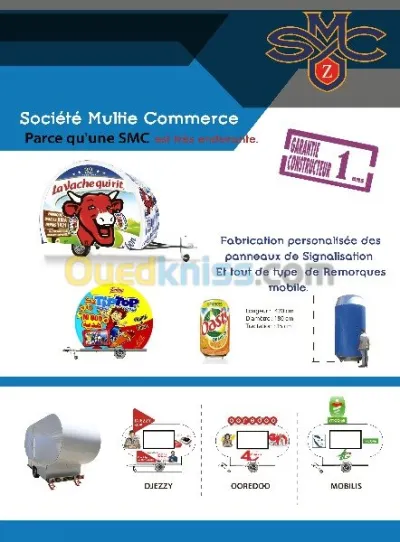 Fabrication personnalisée des panneau de signalisation et tout type de remorque mobile et publicitaire . Catégorie : Publicité & Communication Créez le buzz à travers d’une opératio