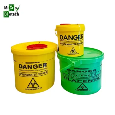 DASRI – Collecteur de déchets (déchets d’activités de soins à risques infectieux) hautement résistant et étanche, nécessaire dans tous les laboratoires pour la collecte de déchet