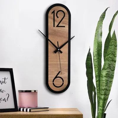 MDF De haute qualité Cette horloge murale ovale en bois de style minimaliste est un objet à la fois élégant et fonctionnel. Elle se distingue par sa forme allongée et son design épur�