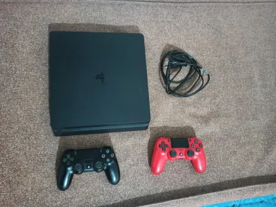 PS4 slim 500 giga en très bon état Cabat Angleterre Ne chauffe pas et ne fait pas de bruit Avec 2 manettes originales les 2. Version 12.5 avec plusieurs jeux gratuits (PES, football, vo