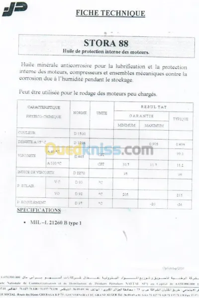 STORA 88 / HUILE DE PROTECTION INTERNE DES MOTEURS , COMPRESSEURS , ET ENSEMBLE MECANIQUE CONTRE LA CORROSION DUE A L'HUMIDITE PENDANT LE STOCKAGE
