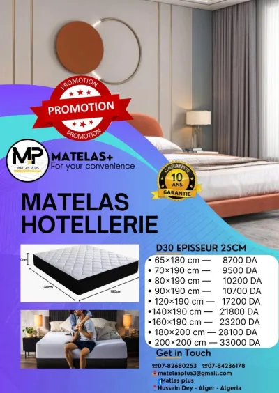 MATELAS PLUS – Confort & Qualité pour votre sommeil 🛏️✨ Offrez-vous des nuits paisibles avec nos matelas de haute qualité, disponibles en modèles : D30 – conçus pour allier co
