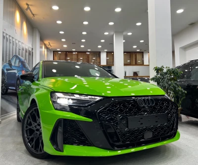 Dahra Auto vous présente la Audi rs3 performance 2.5tfsi 400ch boîte automatique full options/ pack carbone / couleur option kyalami Green roulée 1500km 2025🇩🇪 Pour plus d'informati