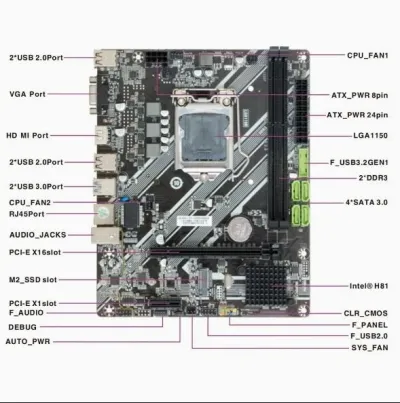 Chipset: IntelH81 Socket: Support intel 4th gen processor Memory: 2x DDR3 VGA: Integrated Intel Graphics LAN: 10/100M Ethernet Audio: 5.1HD audio codec Form Factor: Micro ATX USB 3.2 M.2 SSD