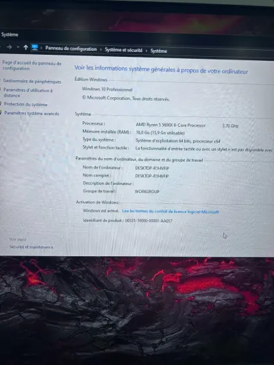 Système d'exploitation Windows 10 Professionnel (X64) 22H2 Processeur AMD Ryzen 5 5600X Cadencé à 4.64 GHz Carte mère ASUSTeK COMPUTER INC. ROG STRIX B550-F GAMING Rev X.0x Chipset