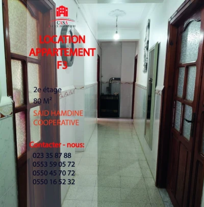 A LOUER: APPARTEMENT F3 - 2e étage - 80 M² - SAID HAMDINE - COOPERATIVE. Said Hamdine, dans une coopérative sécurisée 24h/24, Casa Immo propose à la location un appartement de type F