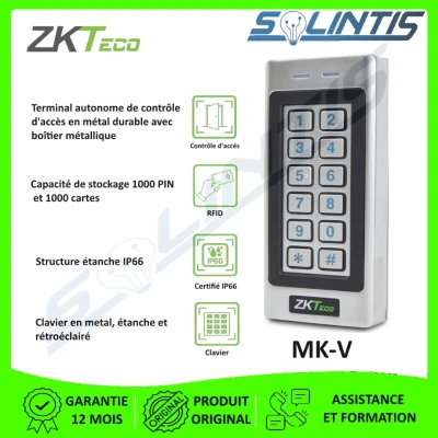 Eurl Tifawt tech vous proposez des control d'accès marque zkteco MK-V est un terminal autonome de contrôle d'accès en métal durable avec boîtier métallique et structure étanche IP66.