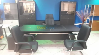 ENSEMBLE DIRECTIONNEL HAUT DE GAMME COMPOSE DE : BUREAU DIRECTIONNEL AVEC RETOUR BIBLIOTHEQUE OU ARMOIRE DE 02 PORTES DEMI-VITREE TABLE BASSE TABLE DE RUNION ( DISPONIBLE EN PLUSIEURS