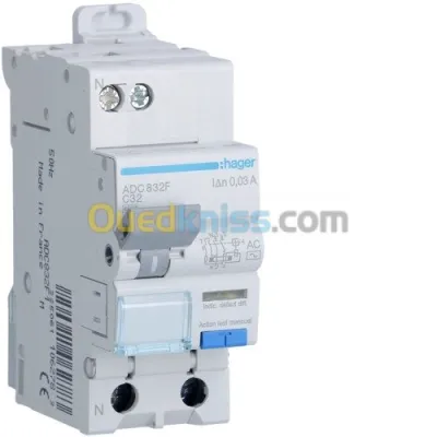 Disjoncteur Hager ADC806F Disjoncteur Hager ADC840F Disjoncteur différentiel 1 Phase + Neutre 4.5/6kA C 30mA type AC 2 Modules Fiche technique : Position du neutre : Gau