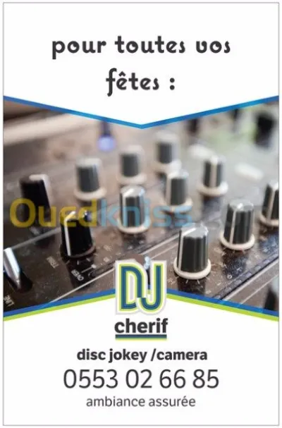 Salut je suis Dj wissem professionnel pour tous vos fête mariage _circoncision Anniversaire....... ect .Je suis la pour animer votre fêtes et d'en faire une journée inoubliable(dj :15000d