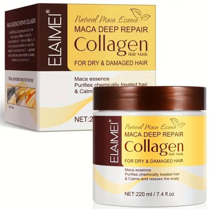 Ce produit est un masque capillaire au collagène , conçu pour les cheveux secs et abîmés. Il nourrit en profondeur, répare la fibre capillaire et aide à restaurer la douceur et la b