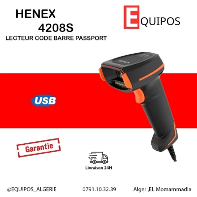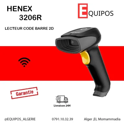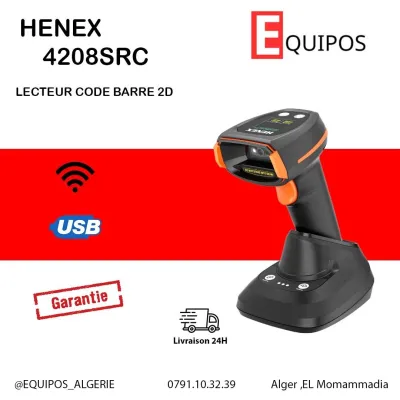 HENEX 5208 Lecteur code barre douchette sans fil 2D avec ecran ▪️Lecture: 1D 2D QR papier, plastic, ecran ▪️Distance : 0mm-250mm ▪️Refrech : 60 fps ▪️Batterie : 2000mah ▪