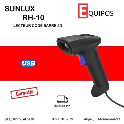 SUNLUX RH10 Lecteur code barre douchette filaire 2D Lecture rapide sur papier et ecran ▪️Lecture: 1D 2D QR papier, plastic, ecran ▪️Distance : 60mm-300mm ▪️Refrech : 60 fps ▪