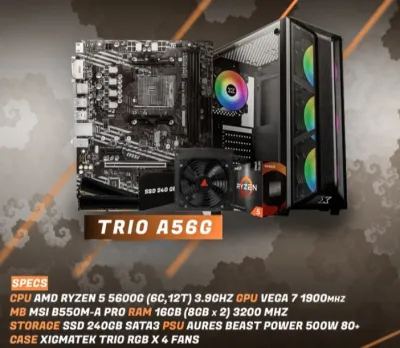 Vente pc gamer état neuf avec un processeur Ryzen 5 5600G avec 16gb ram SSD 120gb HDD 1tb carte mère b450m fournit avec écran clavier souris casque et tapis de souris ecran 24pouce 100Hz