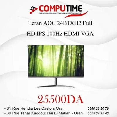 AOC 24B1XH2 FULL HD 100HZ IPS 24″ Taille d’écran 24″ Résolution 1920 x 1080 pixels (FULL HD) Taux de Rafraichissement 100 Hz Temps de Réponse 1 ms Courbure plat Entrées vidéo 1 x