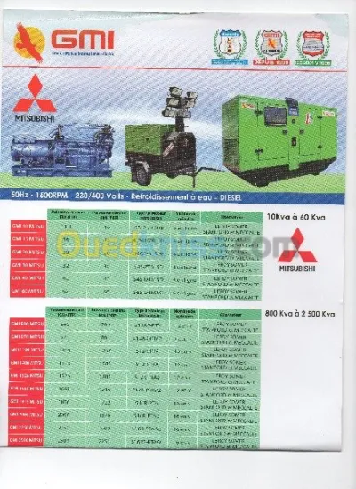 eurl gmi vous propose: groupes electrogenes marque MITSUBISHI (d'origine japan) derniere génération 1000 / 1100 KVA 1250 / 1400 KVA 1600 KVA génératrice (alternateur): LEROY SOMER