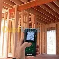 Le DT40M d'Extech mesure des distances jusqu'à 131 pieds (40 m). Il peut calculer la surface et le volume et le théorème de Pythagore intégré permet à l'utilisateur de prendre des mesu