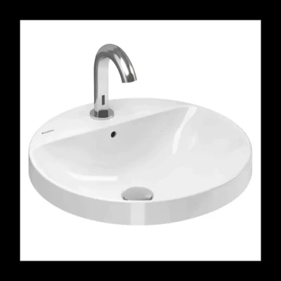 Vasque ronde Variform de 48 cm à encastrer - Matériau : céramique - Avec trop-plein, avec plage de robinetterie - Pose robinetterie : 1 trou percé - Se pose sur plan ou sur meuble - Fixa