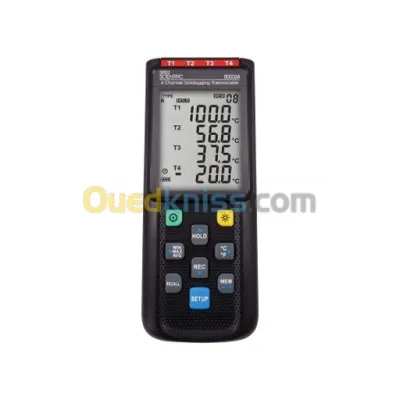 Ce thermomètre portable unique affiche simultanément les données de 4 sondes de thermocouple de type K, J, E ou T sur un grand écran LCD multiligne et rétroéclairé. Réponse rapide a