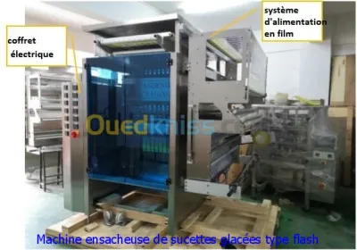 Machine Ensacheuse de Sucettes Glacées Type Flash: 1.Système de contrôle intelligent de PLC, écran tactile, commode à utiliser; 2. Servomoteur pour tirer le film, plus de précisi