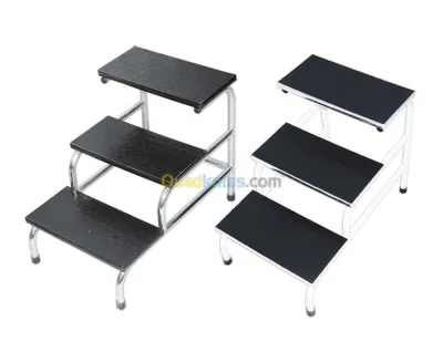 ESCABEAU À (03) TROIS MARCHES Fabriqué en tube d’acier chromé ou epoxy, de diamètre 22 ф, composé de trois marches en bois revêtus d’un plastique antidérapant. Peinture « �