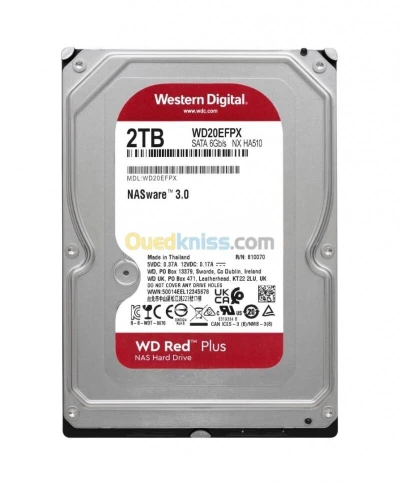 ✅INFORMATIONS GÉNÉRALES : ✅Désignation : WD RED PLUS NAS WARE 2TB - DISQUE DUR HDD 3.5" - 64 MO SERIAL - SATA 6GB/S 5400 RPM - WD20EFPX - ✅Marque : WESTERN DIGITAL ✅Modèle : WD