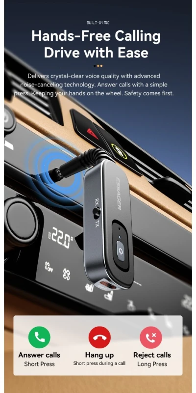 Bluetooth 5.1 Adaptateur auxiliaire récepteur et émetteur rechargeable, ESSAGER 3,5 mm Adaptateur de prise audio auxiliaire pour Airpods / Casque / Haut-parleur / Tapis roulant / Lecteur M