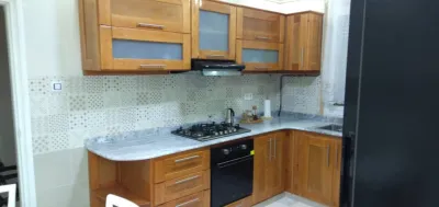 Appartement au 1er étage neuf complètement meublé dans un petit édifice de 4 etages, calme et sécurisé .1 seul appart par palier étage. Djenane Achabou Dely Brahim. 1 place de station