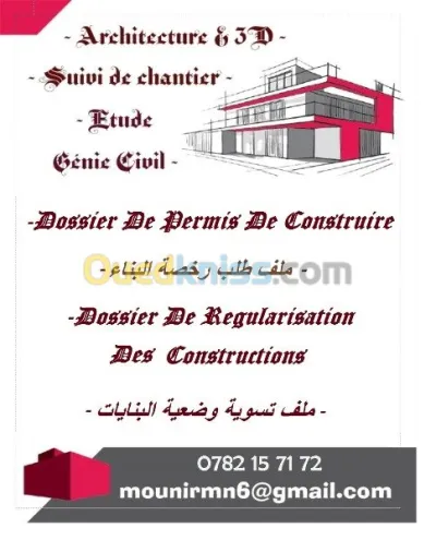 regularisation/permis de construire/permis de démolir /devis estimatif et quantitatif/etude/suivi...et autres