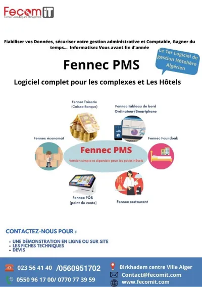 Promo moins de 5% sur tous nos logiciels. Fennec PMS est un système qui permet de gérer toutes les taches techniques et administratives de votre Hôtel, il fonctionne en full Web, avec une