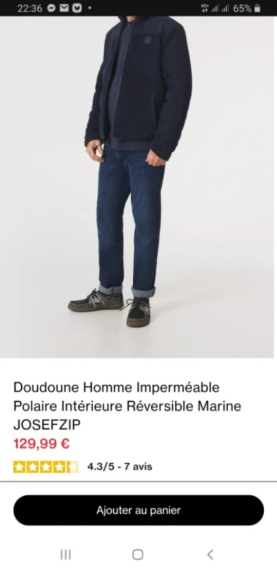 DOUDOUNE HOMME IMPERMÉABLE POLAIRE INTÉRIEURE RÉVERSIBLE BLEU NUITJOSEFZIP