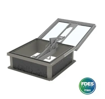Spécialiste en sécurité incendie certifié ACTIF vous propose un de ses produits : Un exutoire à vantaux simple conçu pour le désenfumage de grands volumes de fumée en cas d’incen