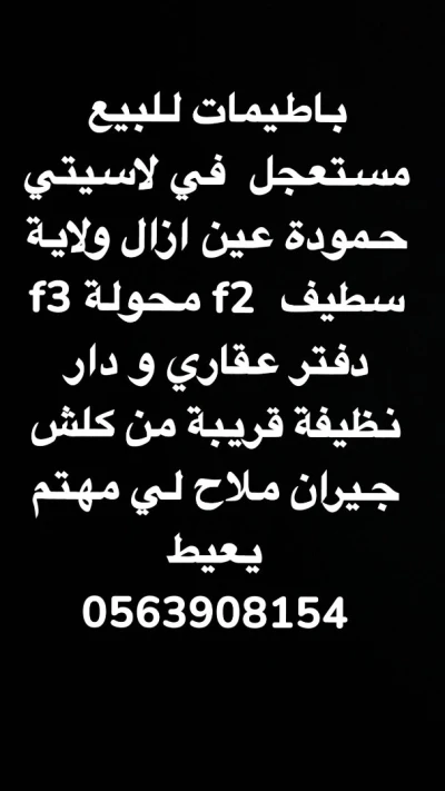 Bonjour location dune grand maison de 180 m à Sétif ain sfiha a 10mn de centre ville de 3 étage et 2 studio F1 F2 grand f4 équipé de tout meublé clim pour lللكراء منزل م�