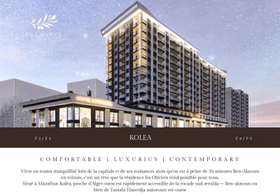 🌟 RÉSIDENCE LES OLIVIERS - KOLÉA 🌟 (À 30 minutes d'Alger, 20 minutes de Tipaza & Blida) 🏡 VOTRE NOUVELLE VIE VOUS ATTEND DANS UN CADRE D'EXCEPTION : ✔ Appartements F3/F4/F5 pen