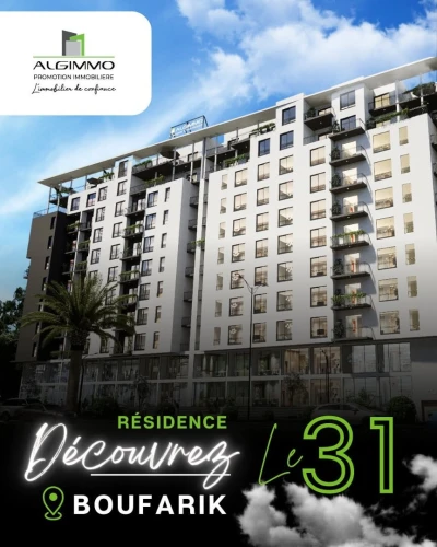 🏡 Résidence Le 31 – Boufarik ✨ F2, F3, F4 & F5 à vendre ! Idéalement située à l’entrée de Boufarik, la Résidence Le 31 vous offre un cadre de vie calme, sécurisé et proche