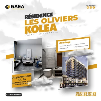 La résidence « LES OLIVIERS » située à Koléa en allant vers Blida, un vrai chef-d'œuvre digne de son nom réalisé par le Groupe GAEA, bénéficie d'un cadre de vie aussi pratique qu'