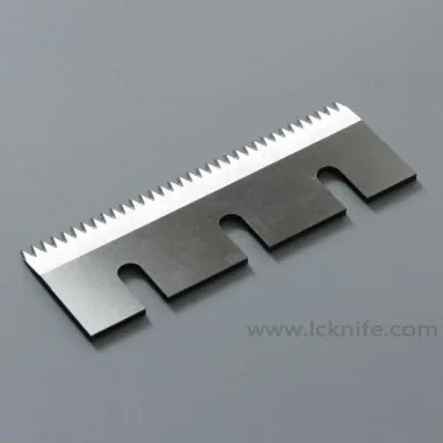 Nous fabriquons des lames de coupe dentelée destinés aux machines d'emballage selon les dimensions et spécifications demandées par les clients