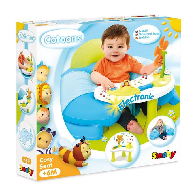 Un siège très confortable idéal pour les bébés qui commencent à se tenir assis.Tablette avec de nombreuses activités d’éveil : zone avec sons et lumières et personnage Zoom jouant