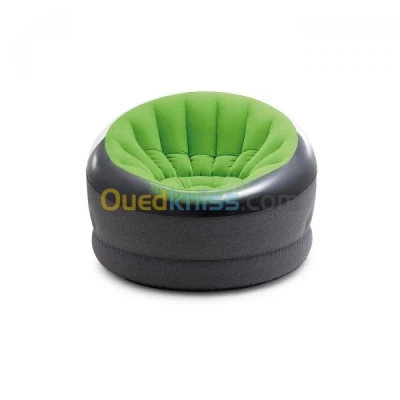 COULEUR : BLEU, JAUNE OU VERT Dimensions : (L)1,12x (l)1,09 x (h)0,69m Avec le fauteuil Jazzy Intex, sublimez votre intérieur grâce à sa forme tout en rondeur. Ce fauteuil vous offrira un