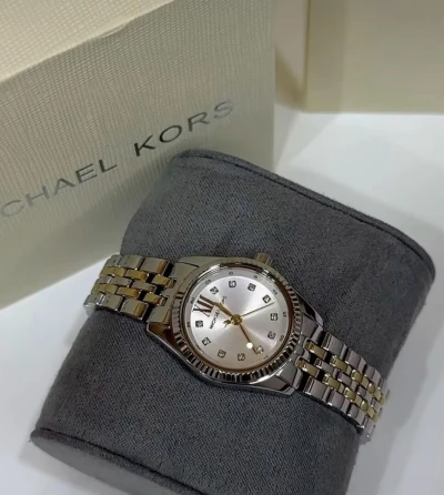 Montre MICHAEL KORS✨ quartz Femme MK4711 Chain lock Blanc 🥰 - mouvement quartz trois aiguilles, boitier en acier doré de 25mm avec un cadran doré sur bracelet en acier doré