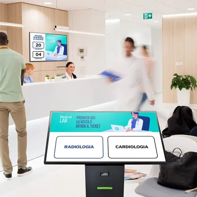 Borne tactile gestion file d'attente 20 et 22 pouces avec imprimante ticket thermique intégré écran 55 pouces