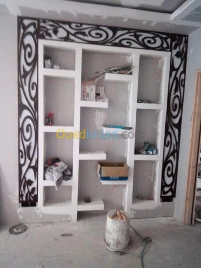 Ana plaquiste li intéressée l3eytli ( tout les modèles )Faux plafond ,séparation ,habillage - meubles TV - cloisons-PVC et parquè , démontable..... finition de A - Z