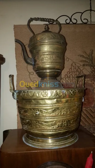 Ouadaia Aiguière avec son bassin et porte savon en cuivre jaune