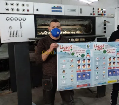 Bonjour nous sommes une entreprise qui spécialisée dans l impression offset grand format 70*100 et petit 50*70 et aussi la finition les brochures , les affiches ,les poster ,les étiquette