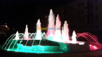 Conception et réalisation (fourniture ou fourniture et pose) de: -jet d'eau ( carré , en toute taille avec des ajustage varier, eclairage, armoire de commande ...etc) -mur d'eau ( en verre
