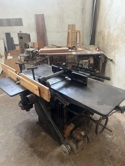 À vendre : 2 machines de menuiserie complètes 🔧 🪚 1ère machine : Combiné ancien en fonte (toupie, dégauchisseuse, mortaiseuse, scie), solide et fiable, en excellent état de fonc