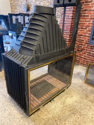 Foyer à bois français marque rené brisach L 78 cm H 62cm P 45cm Bûche 60 cm Puissance 14 kw