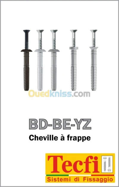 Nous mettons en vente des Chevilles à frappe de très bonne qualité d'origine italienne de la marque TECFI Fixing systems : Les dimensions disponible sont : - 6 x 35