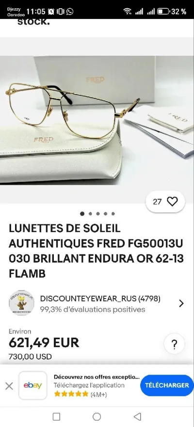 A vendre une paire de lunettes de soleil de la célèbre et luxueuse marque Fred. Neuves jamais portées.