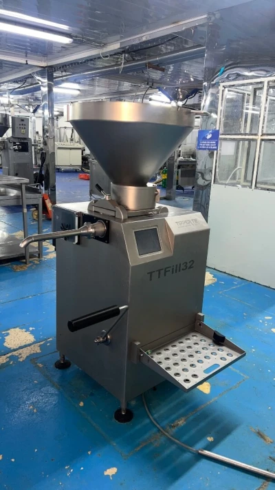 Machine de remplissage sous vide haut de gamme pour pâte épaisse, produits visqueux ou hachés (charcuterie, fromage fondu, pâte à tartiner, etc.). • Marque : Tipper Tie (modèle TTFi